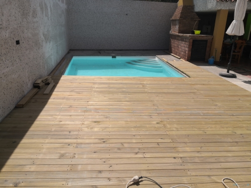 COLOCACION DE SUELO DE MADERA EN PISCINA
